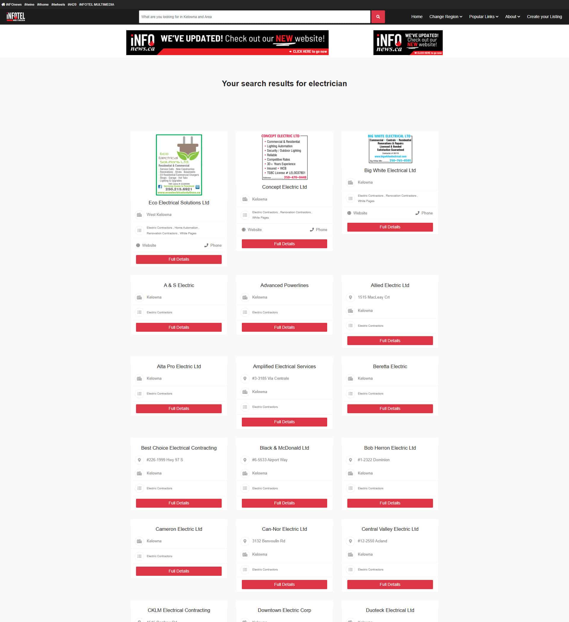 The importance of listing your business with us cannot be overstated. With over five million local business searches per year, iNFOTEL MULTIMEDIA connects your customers directly to you through targeted advertising. Being found by your customers is the first step to great business.